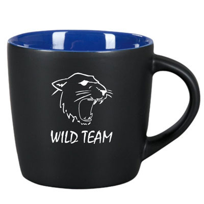 Bardzo popularny kubek reklamowy o klasycznym, obłym kształcie oraz nowoczesnym, matowym szkliwieniu. Błyszczące, kolorowe wnętrze doskonale kontrastuje z czarną satynową powierzchnią na zewnątrz. Kubek dostępny w bardzo wielu wersjach kolorystycznych.