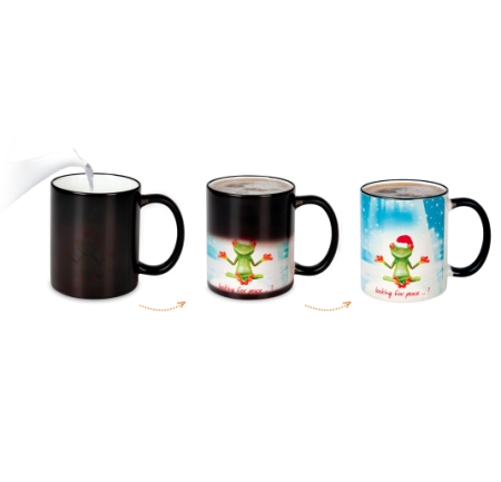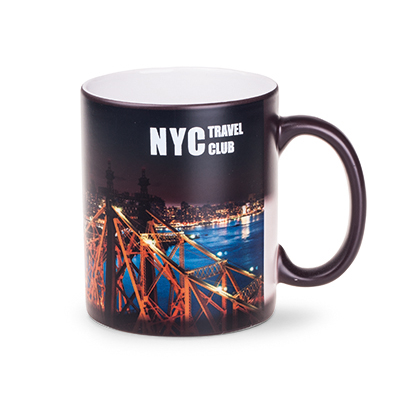 Kubek reklamowy o popularnym cylindrycznym kształcie i matowej powierzchni. Model dostosowany do nanoszenia nadruków Magic Mug - projektów pojawiających się wyłącznie pod wpływem ciepła. Matowa zewnętrzna powierzchnia jeszcze lepiej "ukrywa" nadruk kiedy kubek jest zimny. Możliwa realizacja w 24H