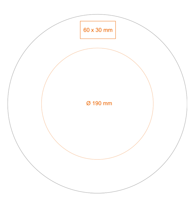 Nadruk na spodzie (zewn.) (ø150 mm) Personalizacja (60x30 mm) |