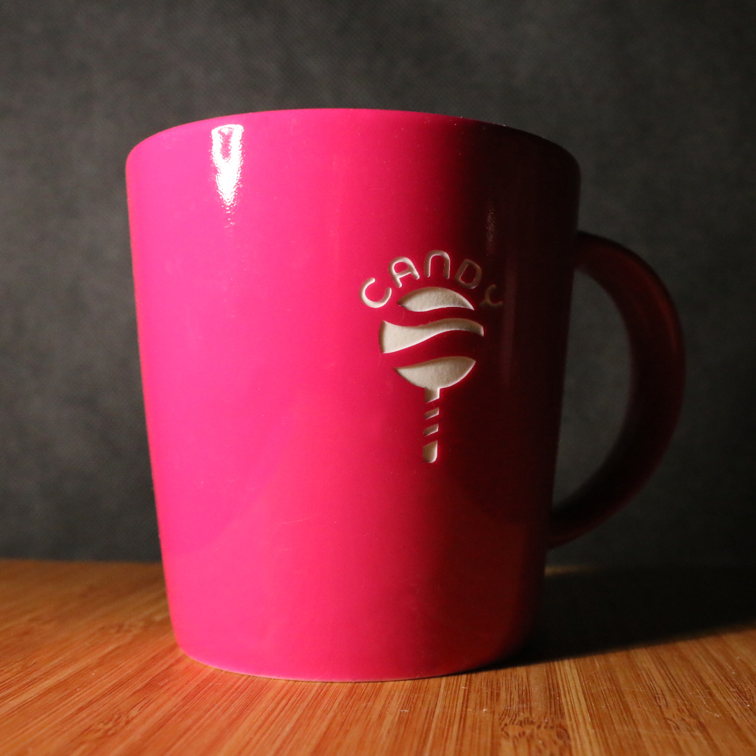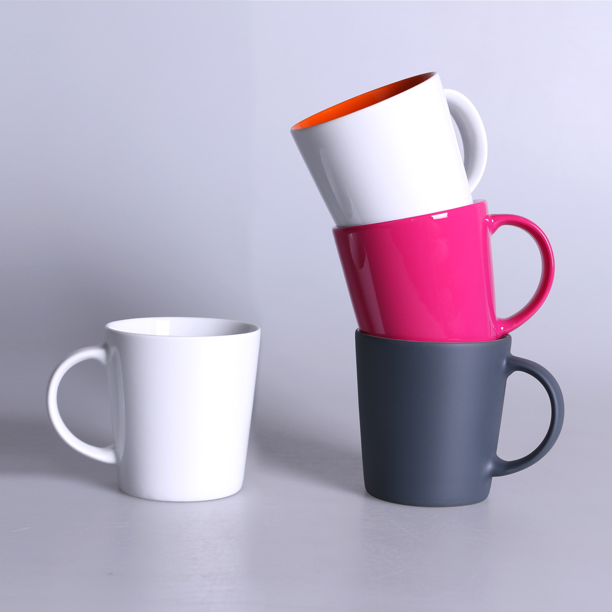 Masywny kubek o klasycznym trapezowym przekroju. Szerokie ucho kubka zapewnia stabilny chwyt i pozwala na umieszczenie dodatkowych dekoracji. Prostota połączona z elegancją.