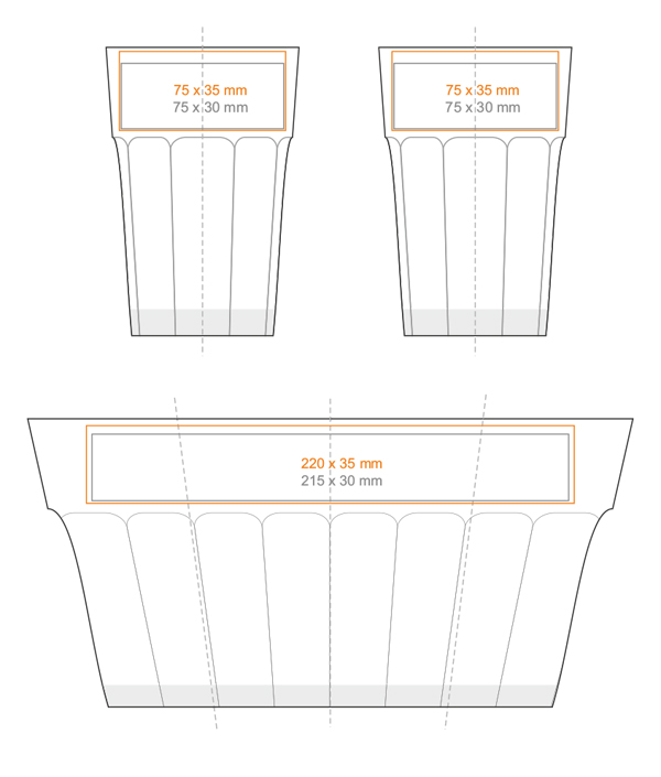 Popularna szklanka z grubościennego szkła. Kształt dolnej części z charakterystycznymi żłobieniami zapewnia pewny uchwyt. Część górna umożliwia naniesienie dobrze wyeksponowanego nadruku.