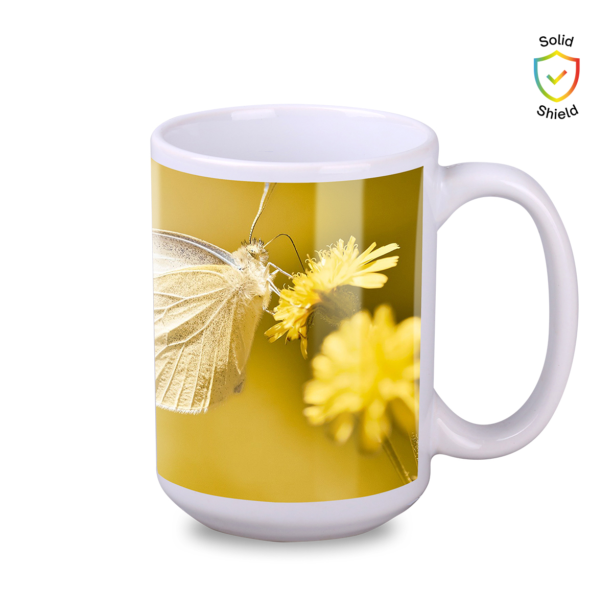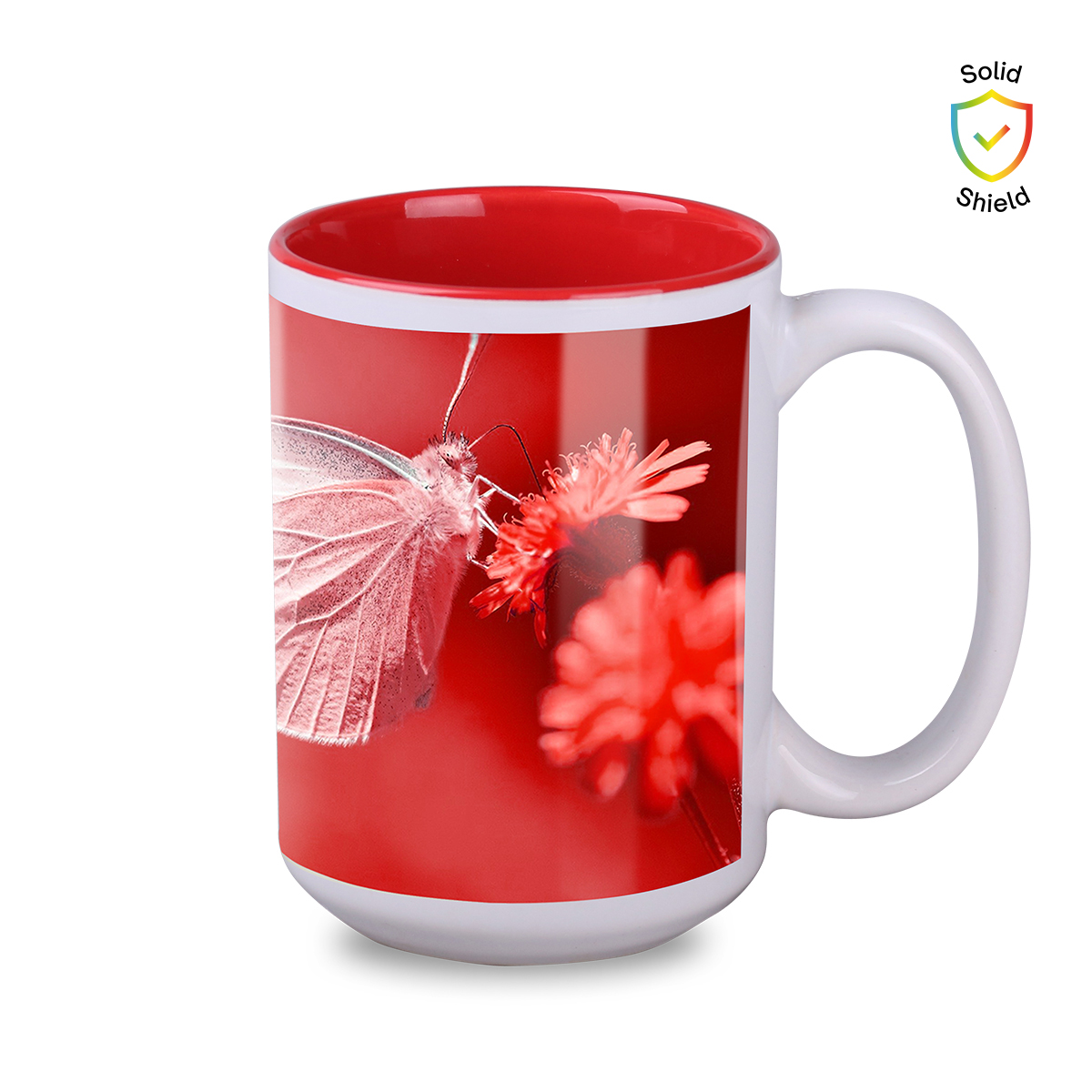 Kubek sublimacyjny o klasycznym kształcie i dużej pojemności. Występuje w kilku wariantach kolorowego wnętrza. Posiada ergonomiczne ucho oraz duże możliwości w zakresie brandingu.