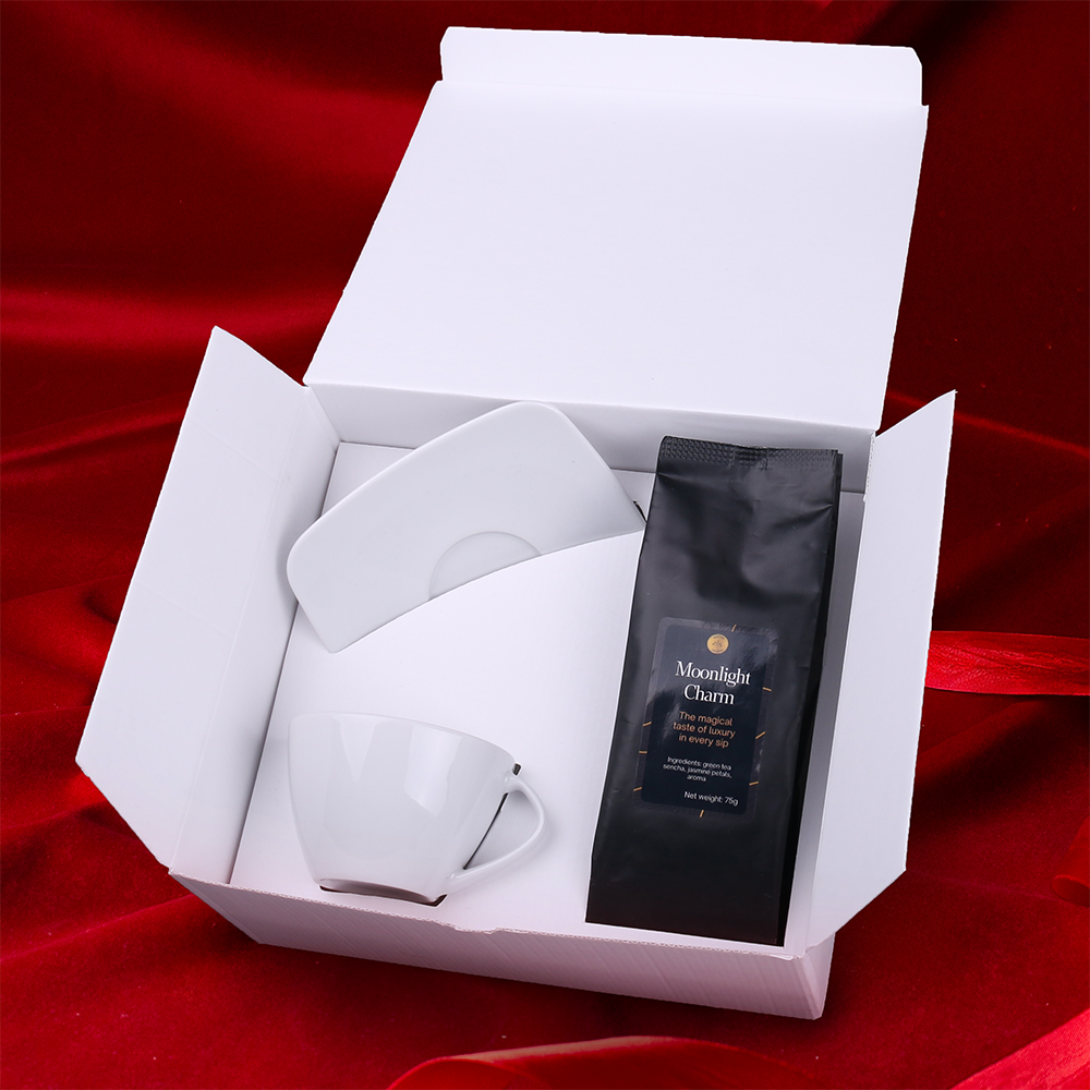 Elegancka porcelanowa filiżanka Luna Set zestawiona z aromatyczną zieloną herbatą "Moonlight Charm" z dodatkiem jaśminu, która przywodzi na myśl wyjątkowe chwile. Zestaw pakowany w dedykowane ekologiczne opakowanie Enlight. Całość opatrzona elegancką personalizowaną obwolutą. PREZENTOWANE ZDOBIENIE MA CHARAKTER POGLĄDOWY I NIE JEST WLICZONE W CENĘ PRODUKTU. ZESTAW DOSTĘPNY W DEDYKOWANYM OPAKOWANIU ENLIGHT Z WYBRANĄ OPCJĄ ZDOBIENIA.
